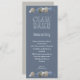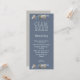 Clam bake, invitations hautes avec exemple de texte pour un dîner de répétition de fête de pré-mariage. Fond gris-bleu foncé avec texte blanc cassé, cette carte comporte des coquillages réalistes en haut et en bas. Le verso est gris-beige uni.