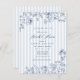 Des invités formellement invitations à votre douche nuptiale "quelque chose de bleu" avec notre carte d'invitation luxueuse avec rayures périwinkle classiques et flores navales.