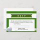 Invitation de réponse de mariage avec un thème de golf en vert et blanc simple avec une balle de golf. Cette carte de réponse a une invitation de mariage assortie :