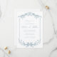 Notre invitation de mariage de style cottage minimaliste présente une calligraphie moderne dans une douce teinte bleue poussiéreuse pour la façon parfaite d'annoncer vos prochains noces.