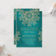 Une belle invitation de mariage sarcelle bleu paon vert turquoise TON TON JOYAU et or avec un médaillon sari ornemental exotique inspiré de l'Inde, motif MÉDAILLON avec un design floral et coup de soleil lotus. Cette invitation de mariage élégante et belle de style indien moderne luxe est parfaite pour toute occasion formelle avec un thème EAST ASIATIQUE INDONÉSIEN MAROCAIN ALADIN OU LES NUITS ARABES. Conçu par Chrissy H. Studios, LLC. Tous droits réservés.