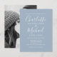 Faisant apparaître votre photo, vos noms dans un style signature, cette élégante carte d'invitation de mariage postale couleur bleu poussiéreux peut être personnalisée avec vos informations dans une typographie chic. Conçue par Thisisnotme©