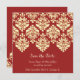 Carte d'invitation de mariage blanche simple élégante indienne asiatique sud-asiatique damas rouge