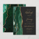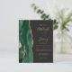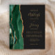 Le bord gauche de cette élégante carte d'invitation de mariage moderne présente une bordure d'agate aquarelle verte émeraude rehaussée de paillettes dorées fausses. Le texte personnalisable combine une écriture manuscrite de couleur or, des polices copperplate et italiques sur un fond gris charbon foncé. Le verso présente un motif d'agate émeraude et or assorti.