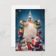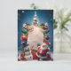 Cette carte d'invitation de Noël est un appel enchanteur à une célébration festive, avec une couronne de fleurs et de flocons de neige, un espace central pour les détails de l'événement, flanqué d'un joyeux bonhomme de neige et du Père Noël, le tout dans un décor enneigé et bleu. Parfait pour répandre la joie des vacances !