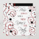 Les invitations de partie de réveillon de la Saint Sylvestre en le noir, le blanc et le rouge élégants avec les étoiles modernes et les remous conçoivent, entièrement personnalisable avec vos détails de partie.