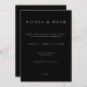 Ces élégantes cartes de faire-part de mariage de réception minimalistes sont dotées d'une typographie de script moderne et d'un texte épuré pour un design noir simple et élégant que vous aimerez. Ajoutez du texte personnalisé pour fournir toutes les informations supplémentaires nécessaires à vos invités. N'hésitez pas à m'envoyer un message pour toute question liée au design - Je serai heureux de vous aider!