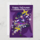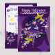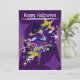 Jolie carte de vacances violette avec une sorcière Neko Halloween sur le devant. Au dos se trouve le texte d'invitation qui peut être personnalisé par les clients.