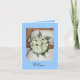 Carte d'invitation demoiselle d'honneur avec les mains d'une mariée tenant un bouquet. Le fond est bleu clair, mais vous pouvez changer la couleur si vous le souhaitez. Personnalisez-la avec votre propre texte ou photo.