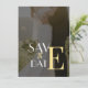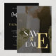 Carte d'invitation romantique dorée et noire à plat pour sauvegarder la date