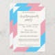 Carte d'invitation de fête ou de célébration sur le thème transgenre avec un design minimaliste et moderne aux couleurs du drapeau transgenre.