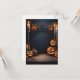 La carte d'invitation d'Halloween dégage un charme festif et éffrayant, parfait pour donner le ton d'une fête d'Halloween. L'espace vierge central attend vos détails personnalisés de l'événement, flanqué de citrouilles sculptés brillants, d'une lumière chaude aux chandelles et de feuilles d'automne éparpillées. Au-dessus, une série de lumières scintillantes et de chauves-souris clignotantes ajoutent à l'atmosphère étrange mais accueillante. L'arrière - plan de nuit noire complète le thème d'Halloween, faisant de cette carte un choix idéal pour inviter les invités à une fête d'Halloween mémorable.