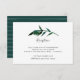 Conçue pour aller avec notre collection de mariage Couronne de palmier, cette élégante carte de réception botanique verte et blanche tropicale présente une seule feuille de palmier dans une aquarelle vert foncé avec les détails de votre réception de mariage, l'heure et l'adresse.