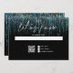 RSVP abstrait moderne - Une guirlande audacieuse et branchée de couleur sarcelle scintillante cascade le long de la page, avec la mention "faites-nous savoir" en calligraphie manuscrite - les initiales du couple en haut - le reste du texte est simple et épuré - le tout sur fond noir. Papeterie de mariage élégante.