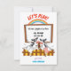 Apportez la joie de la ferme à vos dates de jeu avec notre charmante carte sur le thème de la ferme! Dotée d'une illustration fantaisiste de vaches de caricature joueuses se balançant sur une clôture en bois rustique, cette carte est parfaite pour inviter des amis à se joindre à la fête. La vibrante voûte arc-en-ciel au-dessus ajoute une touche de couleur, tandis que les tons chauds de foin jaune donnent une scène joyeuse. Avec une enseigne blanche encadrée de bois en haut, c'est parfait pour personnaliser votre message. Célébrez la joie de l'amitié d'enfance dans un cadre agricole délicieux!