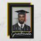 Célébrez le jalon de votre diplômé avec cette carte d'invitation élégante et personnalisable. Avec un thème classique de l’école de noir et d’or et un espace pour la photo, le nom, l’école et les détails de l’événement de votre diplômé, ce design offre une façon intemporelle aux invitations aimés jusqu’au grand jour. Parfait pour les bacheliers ou collégiaux ! 𝐍 𝐓 𝐄 ! Les couleurs de l'arrière - plan et les éléments peuvent être changés. Assurez-vous simplement de les régler sur les deux côtés, avant et arrière.