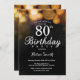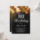 Carte d'invitation pour 80 ans avec paillettes dorées. Anniversaire adulte. Fond bokeh avec paillettes dorées. 16 18 21 30 40 50 60 70 80 90 100. Tout âge. Pour une personnalisation supplémentaire, veuillez cliquer sur le bouton "Personnaliser" et utiliser notre outil de conception pour modifier ce modèle.