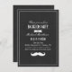 Invitation moderne pour enterrement de vie de garçon avec un design de moustache.