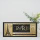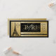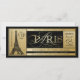 Invitation d'anniversaire à Paris avec la belle Tour Eiffel et écriture dorée sur fond de style billet de boarding pass. Vous pouvez ajouter du texte dans la zone de la Tour Eiffel et modifier la couleur du fond et du texte. Cette invitation élégante noire et dorée pour fête d'anniversaire à Paris est facilement personnalisable pour votre événement en ajoutant simplement vos détails. Il s'agit d'un design imprimé sans véritable feuille d'or.