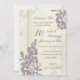 Carte d'invitation pour fête d'anniversaire de mariage de 10 ans en élégant beige et motif floral violet, délicate et formelle. Personnalisable avec les détails de votre fête.