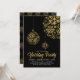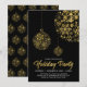 Célébrez la saison avec cette invitation à une fête de Noël. Ce design présente de beaux ornements en boule à flocons de neige avec un thème de couleur paillettes dorées et noires.