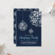 Célébrez la saison avec cette invitation à une fête de Noël. Ce design présente de beaux ornements de boule à flocons de neige avec un thème de couleur bleu et marine.