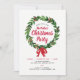 Célébrez la saison avec cette invitation à une fête de Noël. Ce design présente une belle couronne de Noël avec un thème de couleur rouge et vert.