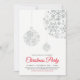 Célébrez la saison avec cette invitation à une fête de Noël. Ce design présente de beaux ornements en boule à flocons de neige avec un thème de couleur rouge et argent.