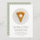Cette invitation unique présente une tranche de tarte à la citrouille orange en aquarelle avec une cuillerée de crème fouettée sur une assiette vintage en aquarelle. Le verso de la carte présente un gingham vert clair en aquarelle. La typographie est un titre en écriture verte avec des détails de fête inspirés de l'ancien dans la police ci-dessous.