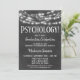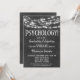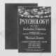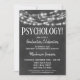 Une invitation amusante pour une fête de remise de diplôme en psychologie sur tableau noir en noir et blanc avec des lumières scintillantes en haut.