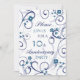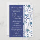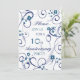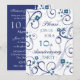 Carte d'invitation pour une fête de 10e anniversaire de mariage dans un élégant motif floral blanc et bleu, délicat et stylé avec des volutes ludiques. Personnalisable avec les détails de votre fête.