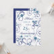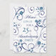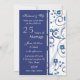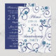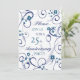 Carte d'invitation pour une fête de 25 ans de mariage dans un élégant motif floral blanc et bleu, délicat et stylé avec des volutes ludiques. Personnalisable avec les détails de votre soirée.