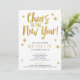 Invitation pour la Saint-Sylvestre 'À la nouvelle année' avec des paillettes dorées scintillantes et des étoiles sur fond blanc. Personnalisez la couleur de fond si vous le souhaitez et ajoutez tous vos détails pour informer les gens de votre événement !