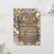 Carte d'invitation pour la Saint-Sylvestre Rustique Or. Bonne année. Flocon de neige doré. Plume blanche. Invitation pour un mariage de Noël. Fond en bois rustique doré. Grange vintage rétro de campagne. Pour une personnalisation supplémentaire, veuillez cliquer sur le bouton "Personnaliser" et utiliser notre outil de conception pour modifier ce modèle.