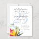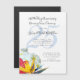 Invitation magnétique moderne et tendance pour une cérémonie de renouvellement de vœux sur un thème tropical. Les invitations plates sont disponibles en trois tailles et sont ornées de fleurs de frangipanier, d'hibiscus et d'oiseaux de paradis. Un grand nombre (pour les années de mariage) peut être ajouté en bleu clair à l'arrière-plan, ou supprimer le numéro d'exemple.