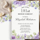 Cette élégante invitation d'anniversaire avec une bordure florale ivoire, lavande, violette et verte est parfaite pour une fête d'anniversaire élégante. Ce design présente un cadre de fleurs aquarelles et est un choix féminin agréable pour un événement spécial pour célébrer un anniversaire marquant.