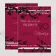 Carte d'invitation pour la fête des 20 ans de mariage en rouge vif, noir et blanc, avec un design floral élégant. Entrez vos informations personnalisées au dos pour votre anniversaire.