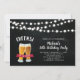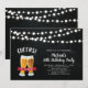 Célébrez votre jour spécial avec cette invitation d'anniversaire élégante. Ce design présente des guirlandes lumineuses, des illustrations de verre à bière sur un fond tableau noir.