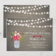 Célébrez votre jour spécial avec cette élégante carte d'invitation pour l'anniversaire de mariage. Ce design présente un magnifique bouquet de fleurs rouges avec un pot Mason et des guirlandes lumineuses sur un fond en bois rustique.