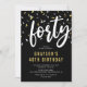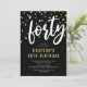 Éblouissez vos invités avant même le début de la fête avec nos invitations d'anniversaire 40 ans élégantes et modernes. Avec un fond noir chic, des confettis blancs et or scintillants et un script 'quarante' gras, ces invitations offrent une touche d'élégance et de joie festive. Son modèle de texte convivial facilite la personnalisation, ce qui garantit que vos invitations sont aussi uniques que votre événement marquant.