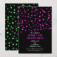 Cartes d'invitation pour une fête d'anniversaire aux étoiles roses et vertes lumineuses. Personnalisez pour tout événement.