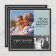 Des blocs modernes de noir et de blanc mettent en valeur deux photos du couple spécial. Utilisez une photo de mariage et une photo d'aujourd'hui pour un effet "à travers les ans", deux photos actuelles ou deux anciennes photos du couple d'anniversaire - le choix vous appartient. Tout le texte peut être facilement personnalisé pour répondre à vos besoins.