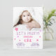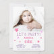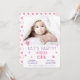 Carte d'invitation pour la fête du premier anniversaire d'une petite fille ou d'un petit garçon. Carte de premier anniversaire avec une jolie photo. La carte comporte de jolies étoiles roses sur le devant et au dos. Le design comprend une photo - insérez votre photo dans le modèle et personnalisez la carte avec vos coordonnées. Invitez votre famille et vos amis à la fête du premier anniversaire de votre fille ou garçon.