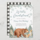 La conception de l'invitation peut être adaptée à tout âge, tout le texte est modifiable. Personnalisez cette invitation de fête d'anniversaire en aquarelle de rêve. Caractéristiques : animaux de la forêt, ours, écureuil, lapin, hibou, neige sur les arbres, flocons de neige et feuillage. Parfait pour un thème hivernal et une première fête d'anniversaire.