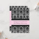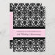 Carte d'invitation pour une soirée d'anniversaire de mariage sur un élégant fond rose blush clair, motif damas floral moderne noir et blanc, délicat et contemporain. Personnalisable avec les détails de votre soirée.