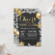 Invitation pour une soirée du Nouvel An en or. Bonne année. Flocon de neige doré. Plume blanche. Invitation pour une douche de nuptiale de vacances de Noël. Fond en or et tableau noir. Noir et blanc. Pour une personnalisation supplémentaire, veuillez cliquer sur le bouton "Personnaliser" et utiliser notre outil de conception pour modifier ce modèle.