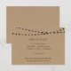 Texte de réponse RSVP drôle pour un mariage amusant ! Le fond est simple avec de merveilleuses guirlandes lumineuses rustiques et un fond en papier kraft.