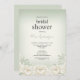Créez une première impression gracieuse avec cette invitation à la douche nuptiale, avec une base d'aquarelle vert sauge muet se mélangeant doucement à l'ivoire au centre. Des pivoines en ivoire délicates et de minuscules bouquets de respiration pour bébés accentuent le bord inférieur et le coin inférieur, ajoutant un charme floral naturel. La mise en page fournit du texte modifiable, ce qui facilite la personnalisation avec les détails de votre événement.