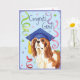 Félicitez votre diplômé préféré avec un cadeau comportant un diplômé cavalier mignon d'épagneul du Roi Charles portant une taloche parmi une bourrasque des confettis.
