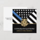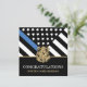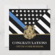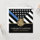 Cette conception comprend un drapeau de la police avec des rayures noires et blanches, ainsi qu'une fine bande bleue. Une excellente façon de féliciter la nouvelle académie de police diplômée. Customiser avec le nom de l'agent d'application de la loi diplômé en or. Célébrez cette étape importante dans le style!